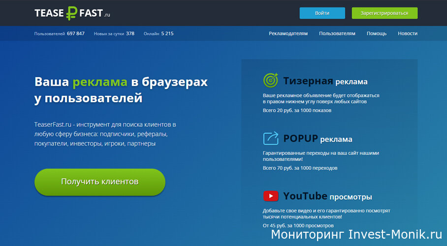 Teaserfast - рекламный сервис для заработка в интернете, а так же для рекламы собственных проектов. Заработок происходит благодаря показу рекламы в ваших браузерах. Для того, чтобы начать зарабатывать, вам необходимо установить расширение Teaser Fast в ваш браузер.